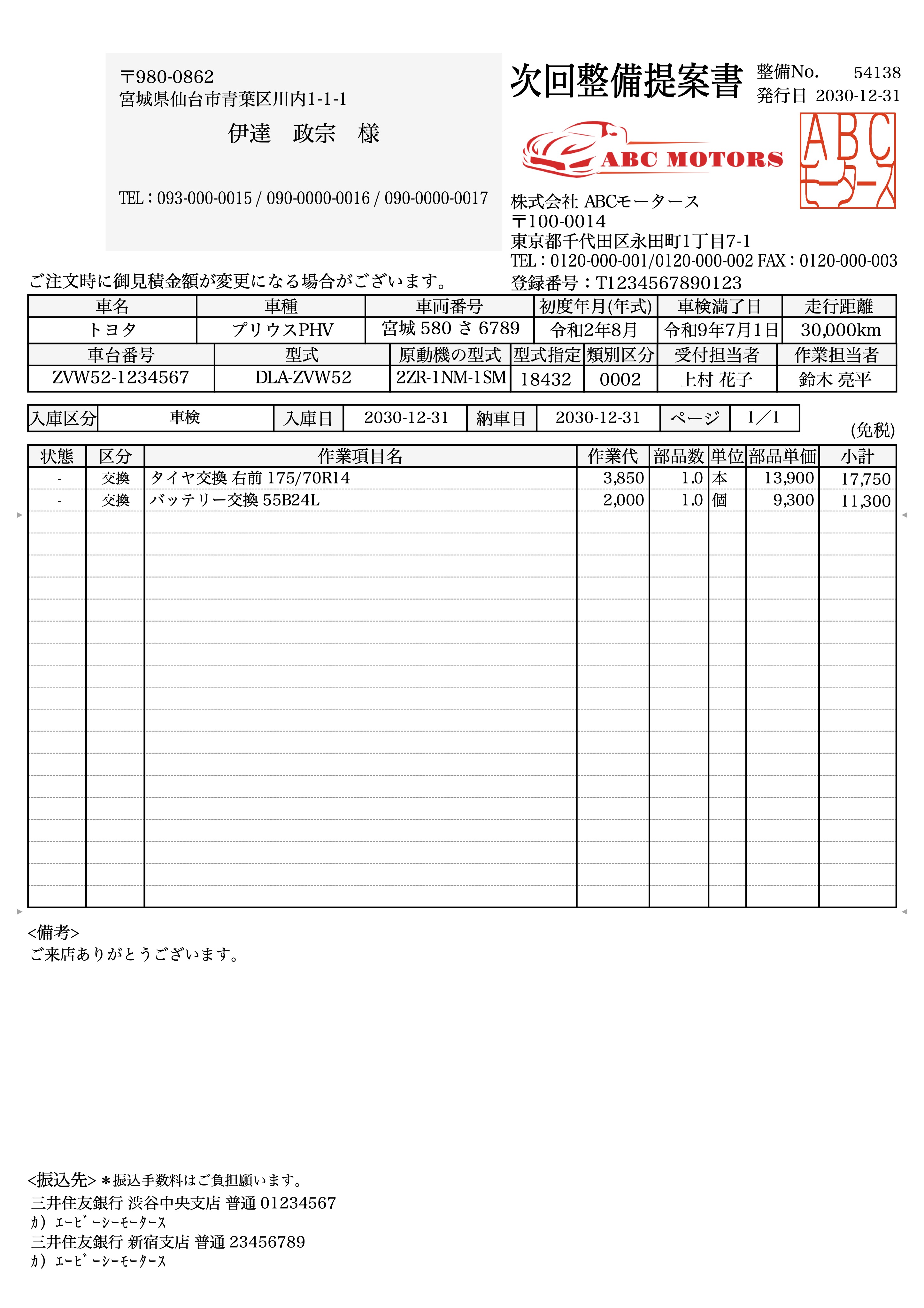 次回整備提案書を印刷する