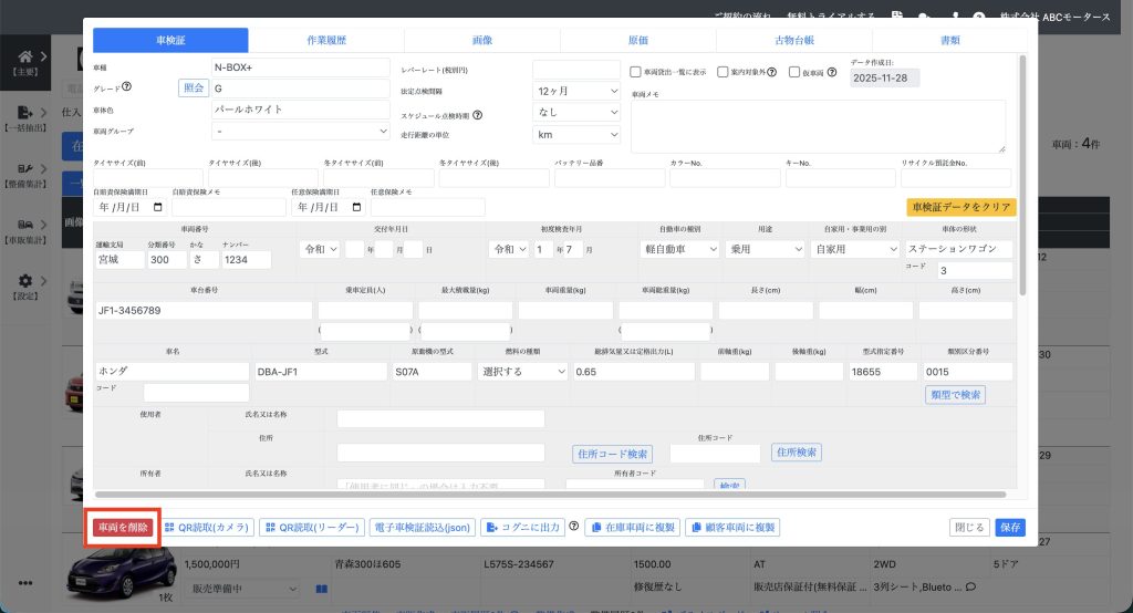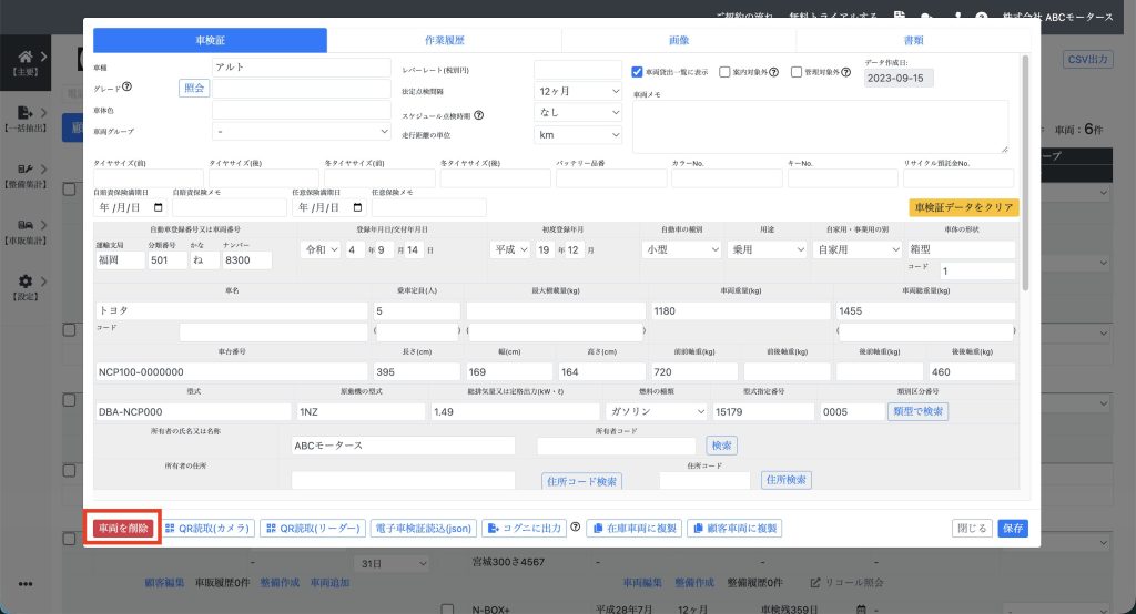 下記マニュアルに沿って整備データ・車販データまたは貸出データを削除後、上記の操作を行います。