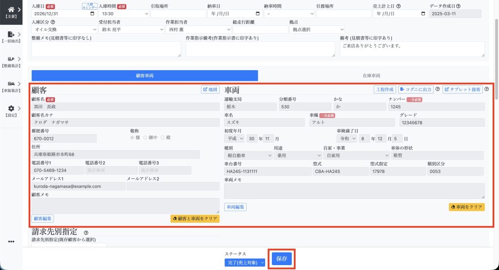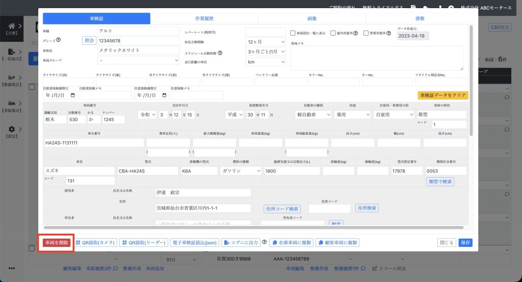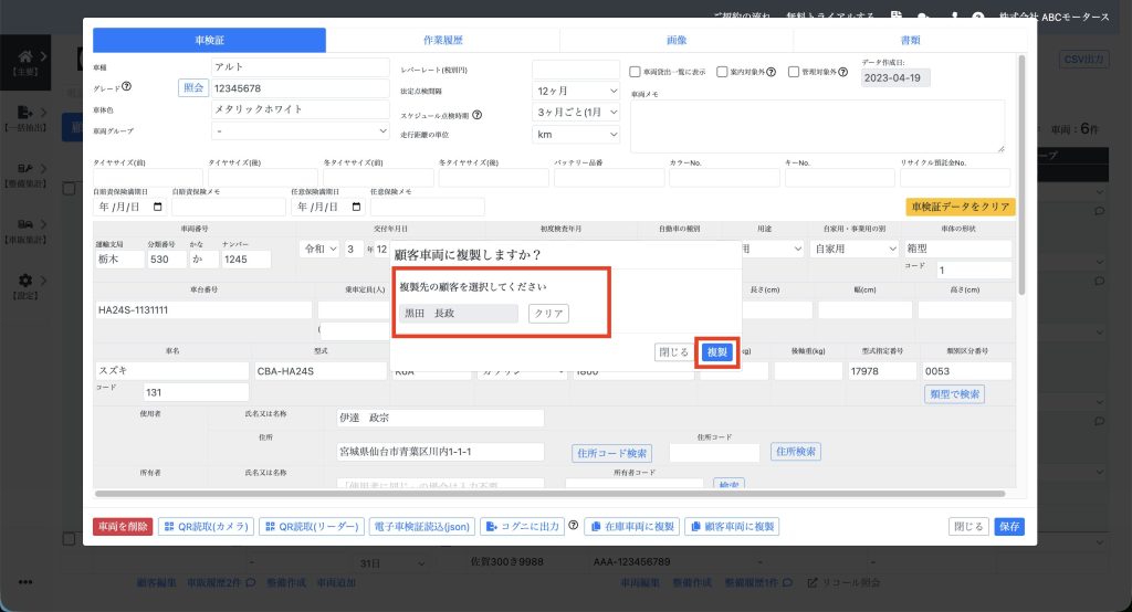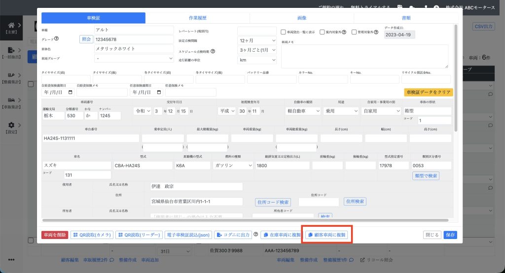 誤った顧客に紐づけた車両データ・整備データを修正します。