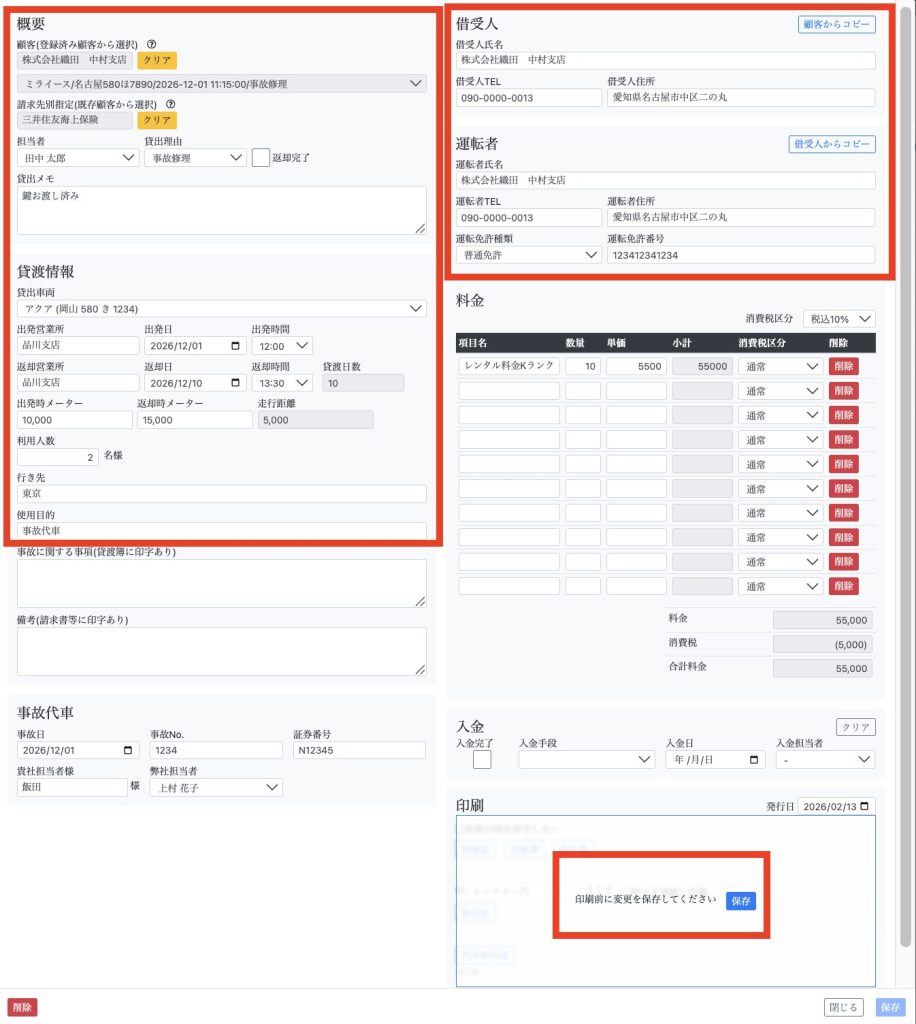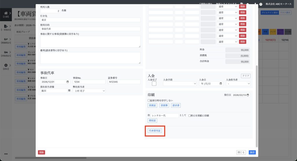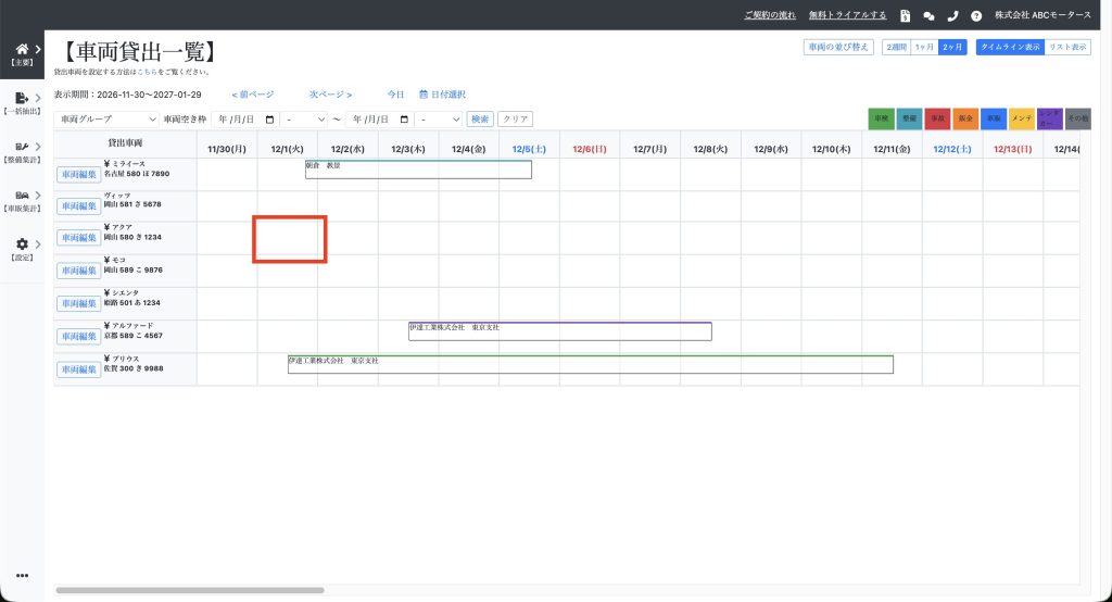 【主要】⇒【車両貸出一覧】を開き、貸出開始日となるマスをクリックします。