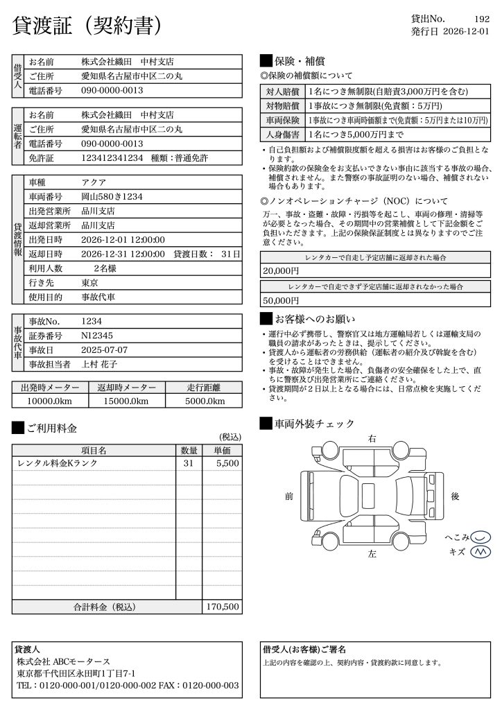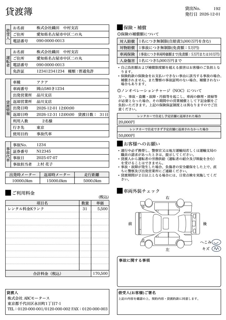 - 保険会社への請求にも対応(事故No.・証券番号などを印字)