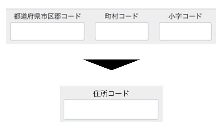 現状では、住所コードを入力する際に「都道府県市区郡コード」「町村コード」「小字コード」がそれぞれ別の入力枠になっているため、入力のたびに枠を移動する必要があります。これらをひとつの入力枠で連続して入力できるようになると嬉しいです。