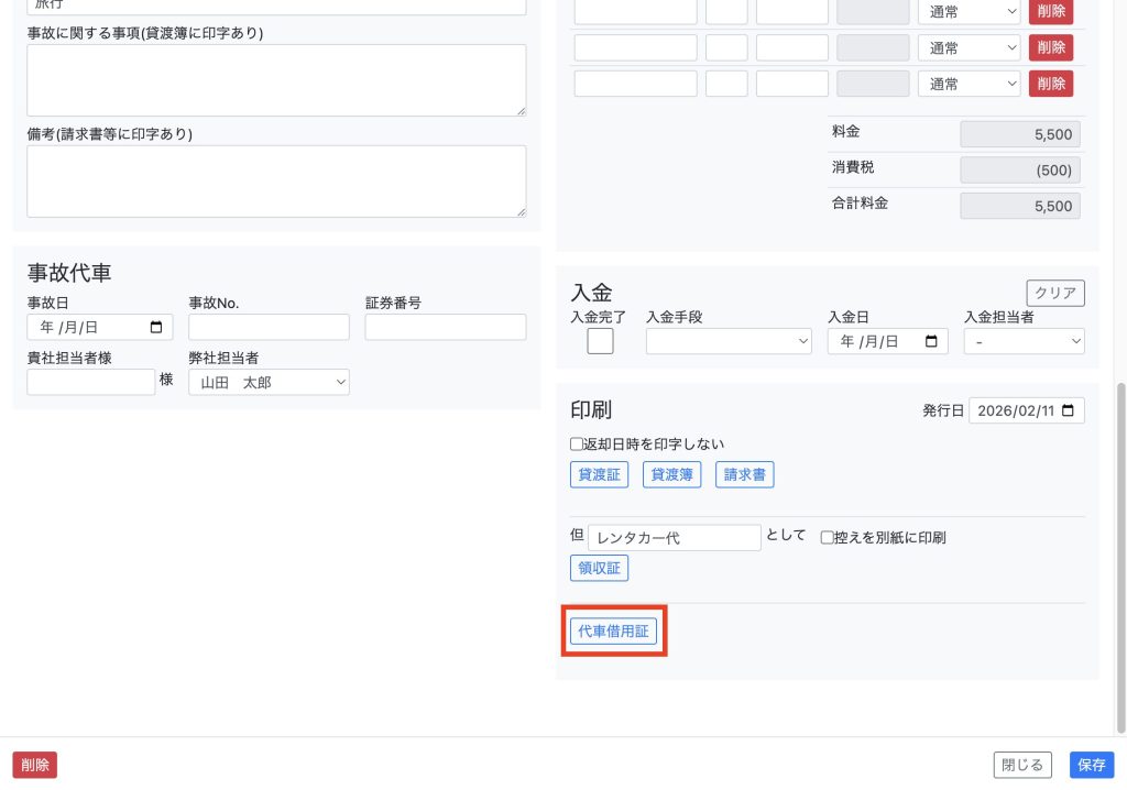 2026.02.10 『代車借用証』を印刷可能に 『代車借用証』を印刷できるようになると嬉しいです。 というユーザー様からのご要望にお応えします。 こちらはオプション契約なしでご利用いただけるようにします。
