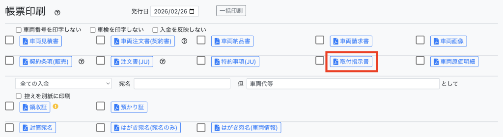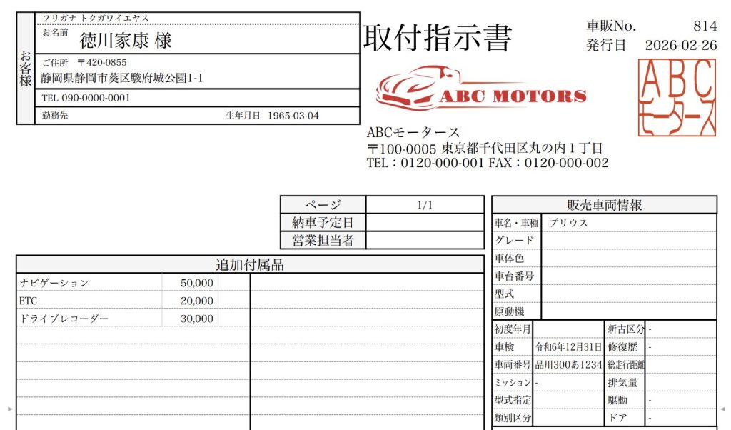 整備の『作業指示書』のように、車販の『取付指示書』を印刷できるようになると嬉しいです。